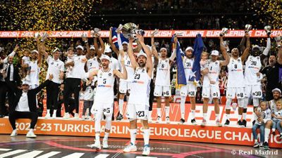 Die Saison 2022/23 begann mit einem weiteren Supercup, dem fünften in Folge und dem neunten insgesamt. Mit Chus Mateo an der Spitze gewann unser Team einen weiteren Clásico (89:83). Tavares war der überragende Spieler. Am 21. Mai 2023 gewann Real Madrid in Kaunas seinen elften Europapokal, nachdem es Olympiacos mit einem historischen Korb von Llull (78:79) besiegt hatte. Es war der Höhepunkt einer unvergesslichen und epischen Euroleague, in der unser Team einen 0:2-Rückstand in den Playoffs gegen Partizan aufholte und Barça im Halbfinale besiegte.