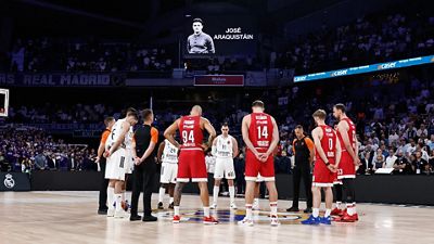 The Movistar Arena observed a minute's silence before the start of the game between Real Madrid and Olympiacos in memory of José Araquistáin, one of our most legendary goalkeepers ever, who passed away last Sunday at the age of 88.