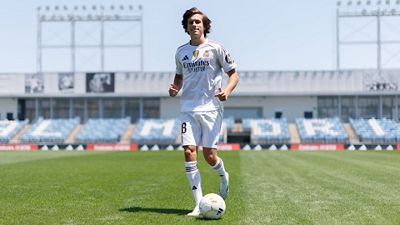 Álvaro Carreras posed with the Real Madrid shirt. After the presentation ceremony and the press conference, the footballer dressed in his new kit and went out onto the pitch at the Alfredo Di Stéfano.