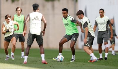 The Liga leaders completed the second training session of the week at Real Madrid City. The players available began with physical work on the pitch. They then carried out ball circulation and pressing exercises, as well as ball combination exercises with finishing in front of goal. The session ended with demanding games in reduced spaces.
