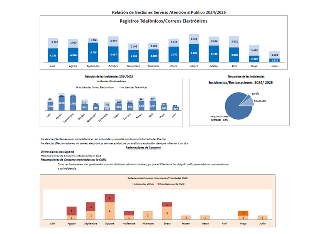 Las gestiones realizadas por la Oficina de Atención al Público durante la temporada 2024-2025 han sido las siguientes:
