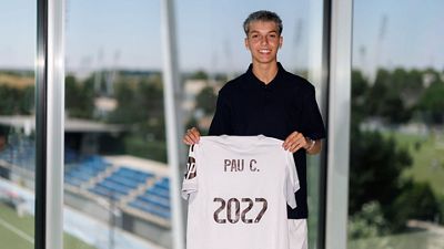 Paula Comendador es nueva jugadora de la primera plantilla del Real Madrid. Desde que llegó a nuestro club en 2021, ha jugado en todos los equipos de nuestra cantera y ha ganado la Liga con todos ellos.