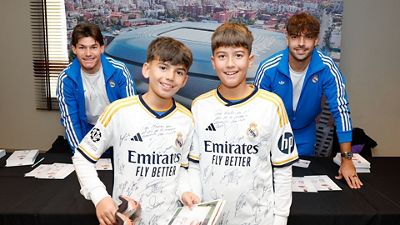 Los dos futbolistas atendieron a los socios y Madridistas en el hotel de concentración.